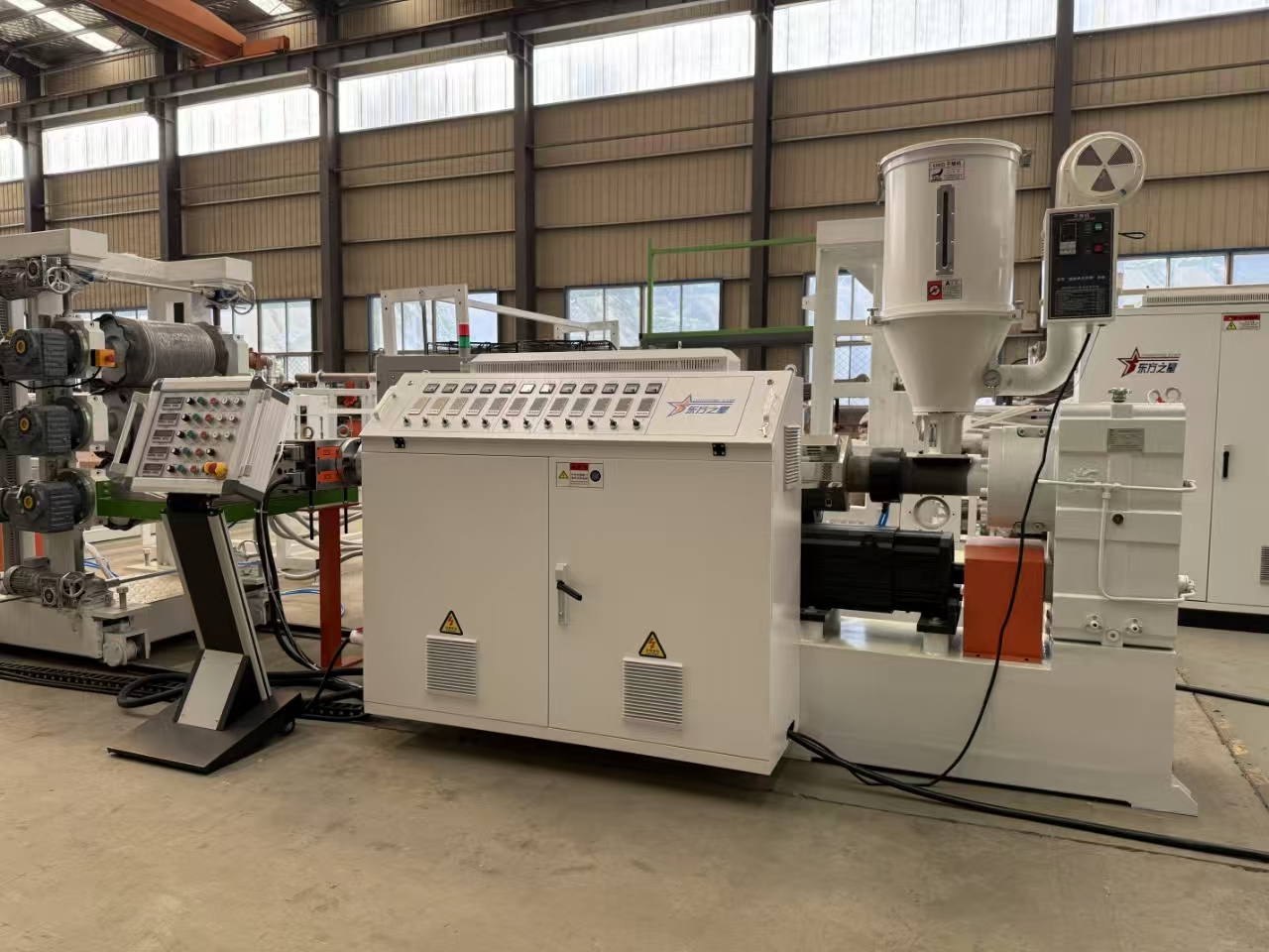 இயந்திரம் ஒரு அதிநவீன பிஎல்சி (நிரலாக்கக்கூடிய லாஜிக் கன்ட்ரோலர்) அமைப்பைக் கொண்டுள்ளது, இது வெளியேற்ற செயல்முறையின் மீது துல்லியமான கட்டுப்பாட்டை அனுமதிக்கிறது. விரும்பிய தாள் பண்புகளை அடைய, ஆபரேட்டர்கள் வெப்பநிலை, வேகம் மற்றும் அழுத்தம் போன்ற அளவுருக்களை எளிதாக சரிசெய்ய முடியும். இந்த நிலை கட்டுப்பாடு நிலையான தயாரிப்பு தரத்தை உறுதிப்படுத்துகிறது மற்றும் பொருள் கழிவுகளை குறைக்கிறது.
