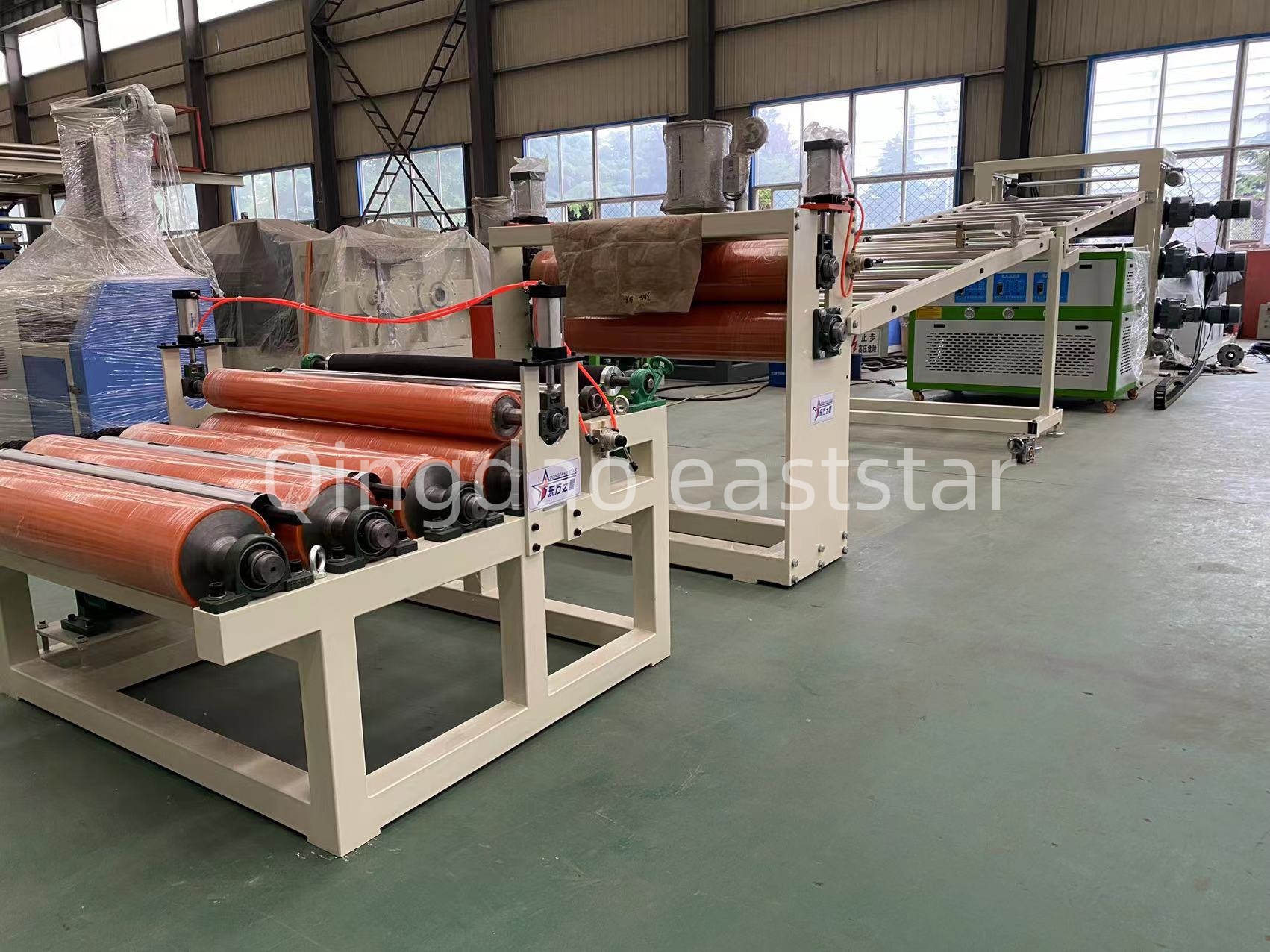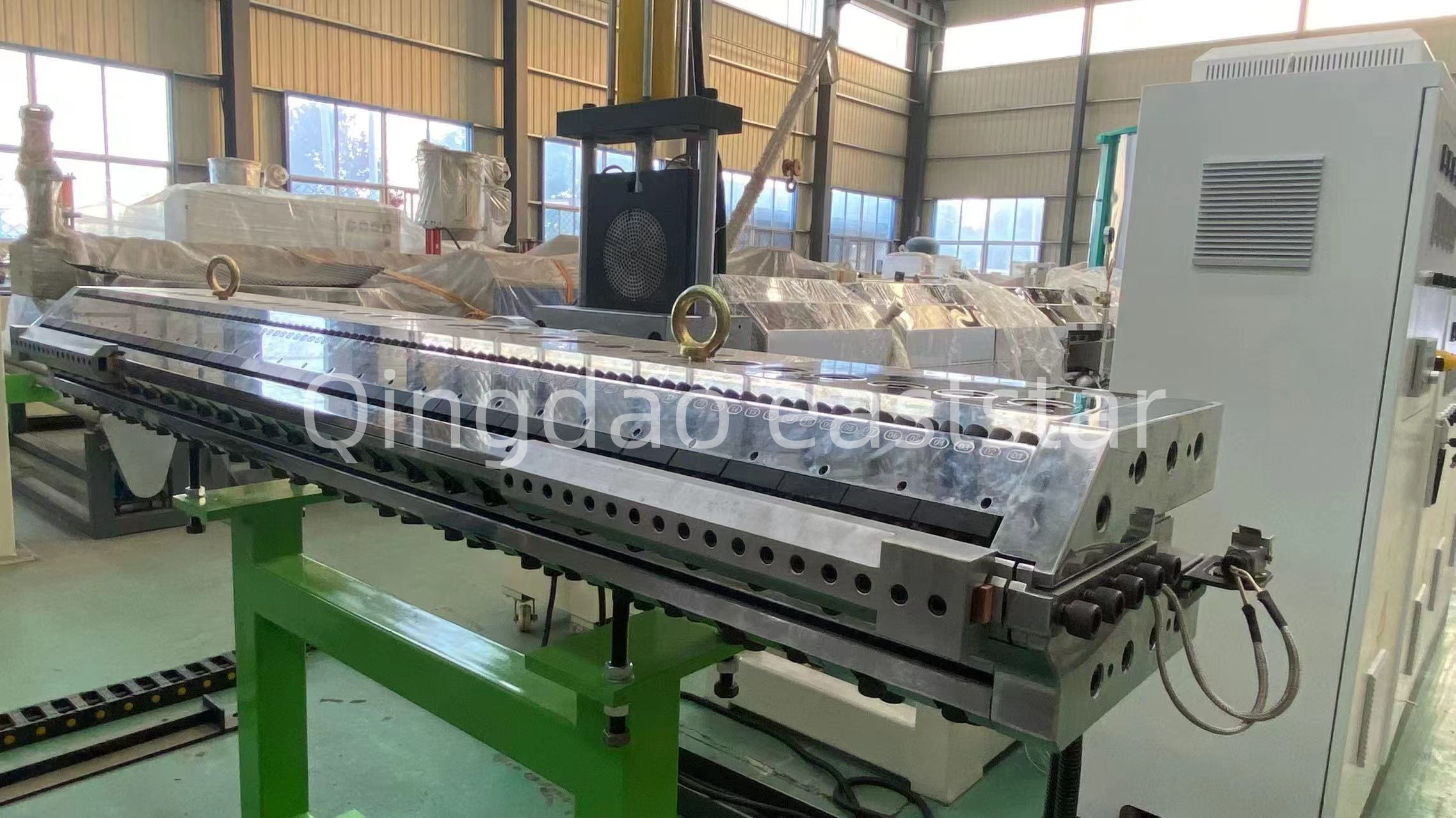 முழுமையானPE வடிகால் வாரிய உபகரணங்கள்ஹைட்ராலிக் ஸ்கிரீன் சேஞ்சர், மெல்ட் மீட்டரிங் பம்ப் மற்றும் 6-மீட்டர் கூலிங் பிராக்கெட் ஆகியவையும் அடங்கும். ஸ்கிரீன் சேஞ்சர் ஒற்றை-தட்டு இரட்டை-நிலைய வடிவமைப்பை ஏற்றுக்கொள்கிறது, இயந்திரத்தை நிறுத்தாமல் திரையை மாற்றுவதை இயக்குகிறது. மீட்டரிங் பம்ப் 150CC மற்றும் நிலையான உருகும் விநியோகத்தை உறுதி செய்வதற்காக 18.5KW மோட்டார் பொருத்தப்பட்டுள்ளது. இழுவை இயந்திரம் Φ250×1700மிமீ நைட்ரைல் ரப்பர் உருளைகளுடன் பொருத்தப்பட்டுள்ளது, மென்மையான இழுவைக்காக 3KW மோட்டார் மூலம் இயக்கப்படுகிறது. மின் கட்டுப்பாட்டு அமைப்புPE வடிகால் வாரிய உற்பத்தி வரிநம்பகமான உபகரணங்களின் செயல்பாட்டை உறுதிசெய்ய, சீமென்ஸ் S7 தொடர் PLC மற்றும் இயங்குப் பலகையை Schneider குறைந்த மின்னழுத்த மின் சாதனங்களுடன் இணைந்து பயன்படுத்துகிறது.