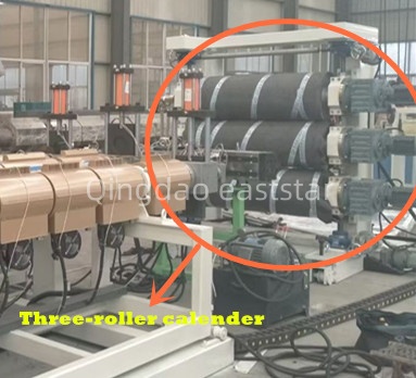 என்ற இறக்க அமைப்புஏபிஎஸ் பல அடுக்கு இணை-வெளியேற்ற தாள் உற்பத்தி வரி2200மிமீ டை அகலம் கொண்ட கோட் ஹேங்கர் வகை ஃப்ளோ சேனல் வடிவமைப்பை ஏற்றுக்கொள்கிறது மற்றும் ஒவ்வொரு அடுக்கிலும் சீரான பொருள் விநியோகத்தை உறுதி செய்வதற்காக ஒரு துல்லியமான விநியோகிப்பாளருடன் பொருத்தப்பட்டுள்ளது. மூன்று-ரோல் காலெண்டரில் Φ450×2500 மிமீ மிரர்-ஃபினிஷ் ரோலர்கள் பொருத்தப்பட்டுள்ளன, ரோலர் மேற்பரப்பு கடினத்தன்மை HRC58-62 மற்றும் 0.08mm குரோம் முலாம் தடிமன் கொண்டது. ஒரு சிறப்பு பல சேனல் வடிவமைப்பு சீரான வெப்பநிலையை உறுதி செய்கிறது. ரோலர் வெப்பநிலைக் கட்டுப்பாட்டு அமைப்பு மென்மையாக்கப்பட்ட சுத்திகரிக்கப்பட்ட நீரை ஊடகமாகப் பயன்படுத்துகிறது, ±1℃ என்ற வெப்பநிலைக் கட்டுப்பாட்டுத் துல்லியத்துடன், மூன்று 2.2KW சுடுநீர் குழாய்கள் மற்றும் மூன்று செட் 12KW ஹீட்டர்களுடன் தாள் உருவாக்கத்திற்கான துல்லியமான வெப்பநிலை சூழலை வழங்குகிறது.