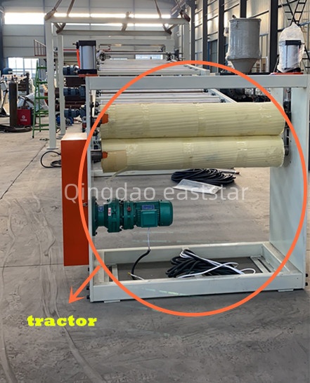 நாங்கள் பொருத்தியுள்ளோம்ஏபிஎஸ் பல அடுக்கு இணை-வெளியேற்ற தாள் உற்பத்தி வரிமுழுமையான உணவு மற்றும் துணை அமைப்புடன். SJ-130 எக்ஸ்ட்ரூடரில் E-1000 ஸ்டெயின்லெஸ் ஸ்டீல் ஸ்க்ரூ ஃபீடர் பொருத்தப்பட்டுள்ளது, மேலும் SJ-70 எக்ஸ்ட்ரூடரில் E-300 வெற்றிட ஃபீடர் பொருத்தப்பட்டுள்ளது, இது வெவ்வேறு மூலப்பொருட்களின் துல்லியமான விநியோகத்தை உறுதி செய்கிறது. குளிரூட்டும் ஆதரவில் 8 மீட்டர் நீளமுள்ள துருப்பிடிக்காத எஃகு உருளைகள் மற்றும் மூன்று சரிசெய்யக்கூடிய விளிம்பு கட்டர்கள் பொருத்தப்பட்டுள்ளன, இது தாளின் போதுமான குளிர்ச்சியையும் நேர்த்தியான விளிம்புகளையும் உறுதி செய்கிறது. கட்டிங் மெஷின், ஒரு கொரிய ஆட்டோனிக்ஸ் குறியாக்கி பொருத்தப்பட்ட ஒரு மெக்கானிக்கல் எலக்ட்ரிக் ஷியரைப் பயன்படுத்துகிறது.