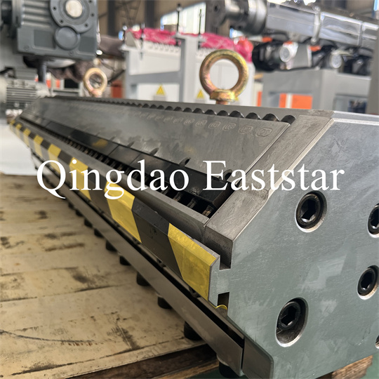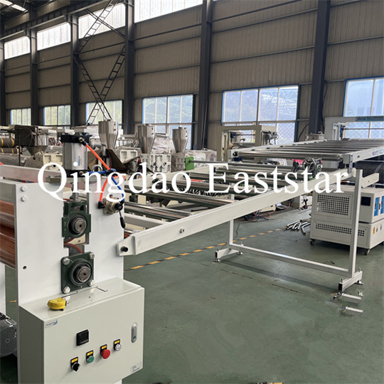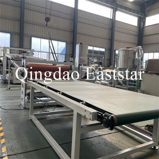 அடைப்புக்குறி, ஒரு ரப்பர் ரோலர் இழுவை இயந்திரம், ஒரு வெட்டுதல் இயந்திரம் மற்றும் ஒரு கன்வேயர் பெல்ட் சாதனம். PVC ஆன்டி-ஸ்கிட் பிளேட் எக்ஸ்ட்ரூடர் உபகரணங்கள், தயாரிப்பு அகலம்