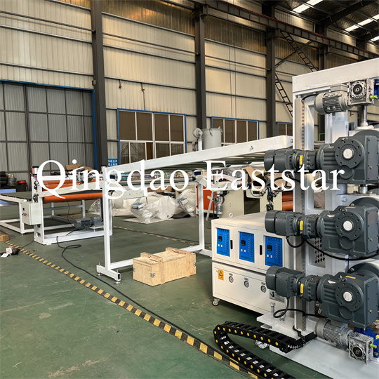 சாஃப்ட் பிவிசி ஆன்டி-ஸ்கிட் பிளேட் எக்ஸ்ட்ரூடர் உபகரணங்கள்: கருவிகள் முக்கியமாக ஒற்றை-ஸ்க்ரூ எக்ஸ்ட்ரூடர், மூன்று-ரோலர் காலண்டர், 6-மீட்டர் கூலிங் ஆகியவற்றைக் கொண்டுள்ளது.
