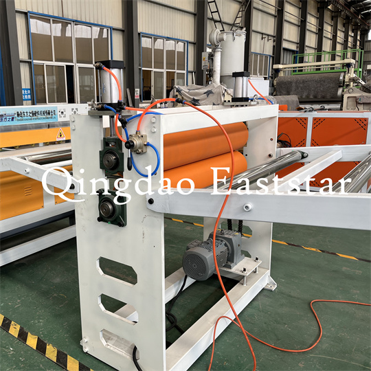 Pvc ஆன்டி-ஸ்லிப் மேட் எக்யூப்மென்ட் சாஃப்ட் ஷீட் மெஷின்: கருவிகள் முக்கியமாக ஒற்றை-ஸ்க்ரூ எக்ஸ்ட்ரூடர், மூன்று-ரோலர் காலண்டர், 6-மீட்டர் கூலிங் பிராக்கெட், ஒரு ரப்பர் ரோலர் இழுவை இயந்திரம், ஒரு ஷீரிங் இயந்திரம் மற்றும் ஒரு கன்வேயர் பெல்ட் சாதனம் ஆகியவற்றைக் கொண்டுள்ளது.