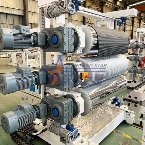 SJ120/33 TPE ஆன்டி-ஸ்லிப் மேட் டெடிகேட்டட் புரொடக்ஷன் லைன் என்பது தெர்மோபிளாஸ்டிக் எலாஸ்டோமர் (TPE) பாய் பொருட்களுக்காக வடிவமைக்கப்பட்ட ஒரு தொழில்முறை உற்பத்தி சாதனமாகும். இது 33:1 விகித உயர்-பவர் எக்ஸ்ட்ரூடர், துல்லியமான கோட் ஹேங்கர்-வகை மோல்டுகள், ஒரு மிரர் த்ரீ-ரோல் காலெண்டரிங் சிஸ்டம் மற்றும் முழு தானியங்கி வெட்டு சாதனம் ஆகியவற்றை ஏற்றுக்கொள்கிறது. இது 600-1000 மிமீ அகலம் மற்றும் 1-6 மிமீ தடிமன் கொண்ட உயர்தர TPE எதிர்ப்பு ஸ்லிப் பாய்களை திறமையாக உருவாக்க முடியும். துல்லியமான வெப்பநிலை கட்டுப்பாடு, எளிமையான செயல்பாடு மற்றும் விரைவான உற்பத்தி மாற்றங்களுக்கான ஆதரவு ஆகியவற்றுடன், TPE பொருள் பண்புகளுக்கு உபகரணங்கள் உகந்ததாக உள்ளது. வாகன தரை பாய்கள், வீட்டு எதிர்ப்பு ஸ்லிப் பாய்கள் மற்றும் வணிக பாய் பொருட்கள் ஆகியவற்றின் பெரிய அளவிலான உற்பத்திக்கு இது மிகவும் பொருத்தமானது. முதலீட்டில் குறுகிய வருமானம் மற்றும் நிலையான தயாரிப்பு தரத்துடன், TPE மேட்டிங் சந்தையில் நுழைவதற்கு இது ஒரு சிறந்த தேர்வாகும்.