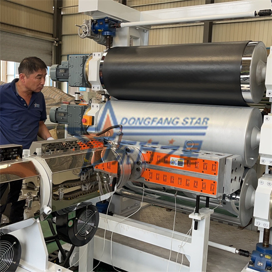 சாஃப்ட் பிவிசி ஆண்டிஸ்டேடிக் எக்ஸ்ட்ரூடர் உபகரணங்கள்: உபகரணங்கள் முக்கியமாக 120 ஒற்றை திருகு எக்ஸ்ட்ரூடர், ஒரு மூன்று-ரோலர் காலண்டர், ஒரு குளிரூட்டும் அடைப்புக்குறி, ஒரு ரப்பர் ரோலர் இழுவை இயந்திரம், ஒரு கத்தரிக்கும் இயந்திரம் மற்றும் ஒரு